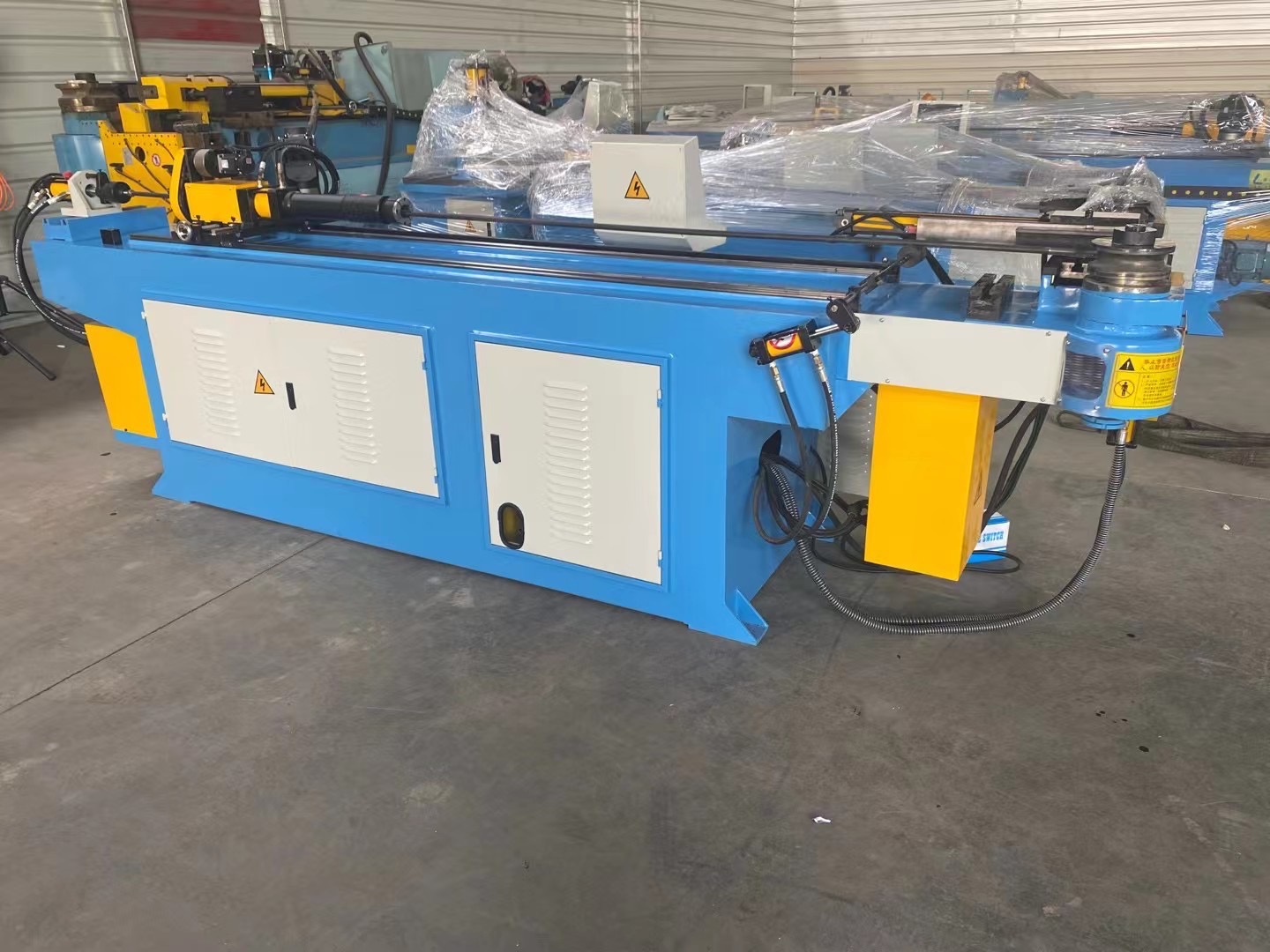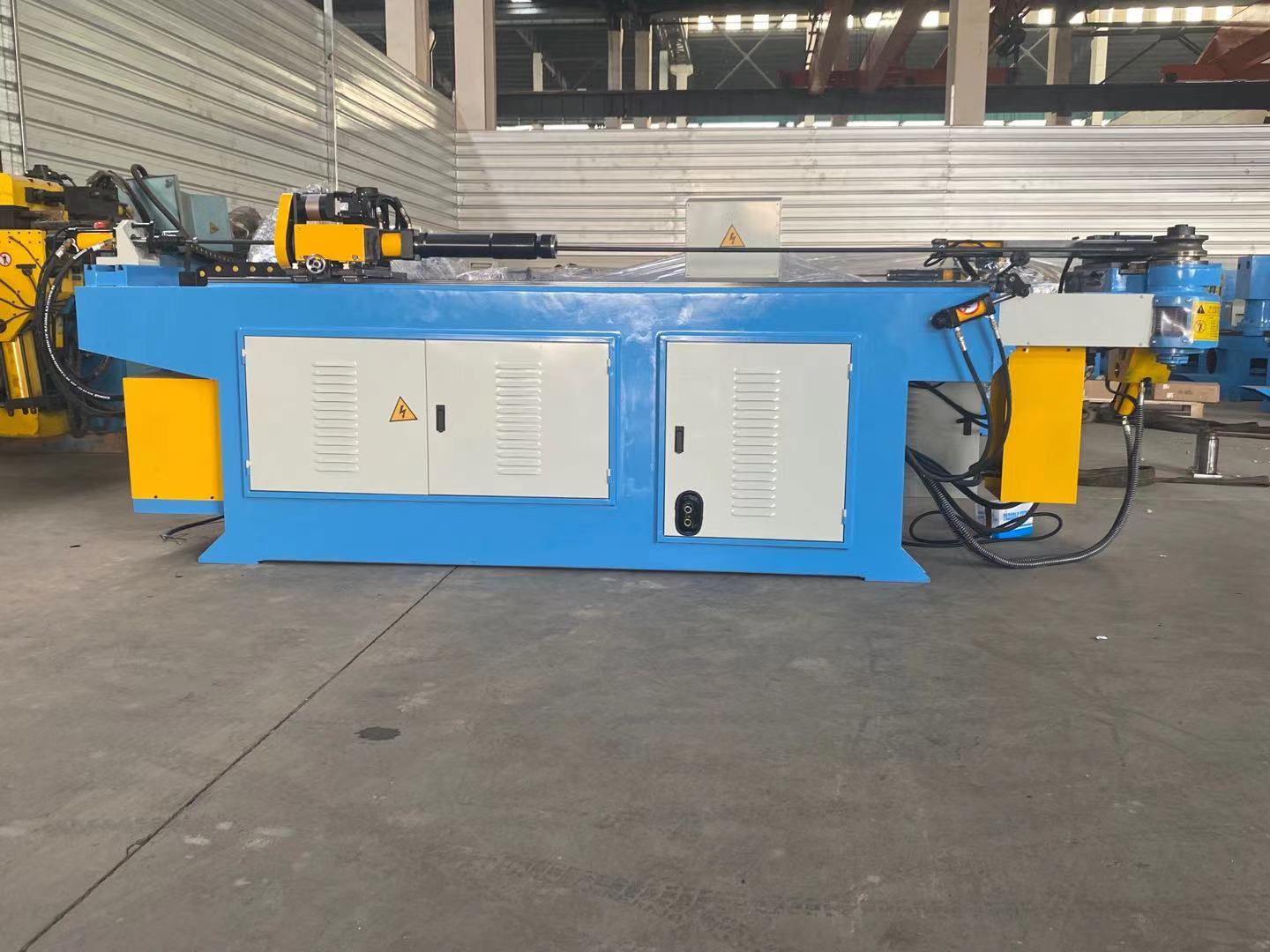 5 机器CNC系统由独立的伺服和液压比例系统完成送料、弯曲、旋转的控制要求,实现XYZ三轴联动,尽力提高客户的产能和产品质量,一般490°弯角的产品在28秒内完成。